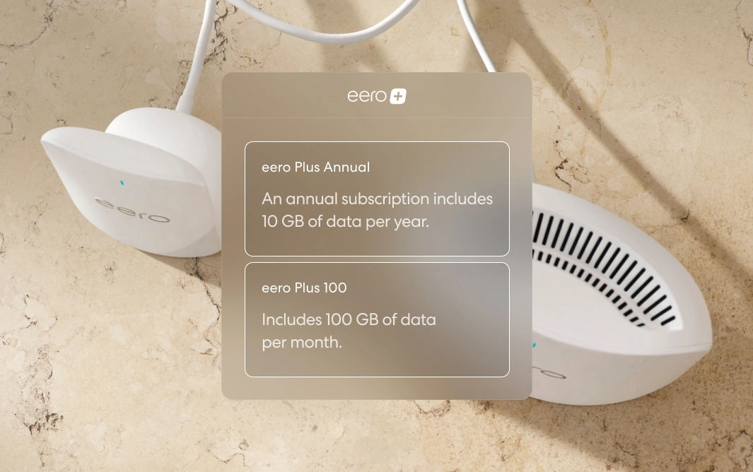 An annual eero Plus subscription also provides peace of mind with advanced protection and family-friendly controls. Learn about eero Plus.